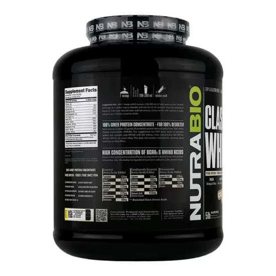 پروتئین وی کلاسیک نوترا بایو NutraBio Classic Whey 2268g مکمل پروتئین وی برای کمک به عضله سازی و رشد عضلات است. کلاسیک وی پروتئین نوترابایو مکملی است که حاوی پروتئین وی کنسانتره است که به نوعی کلاسیک ترین نوع پروتئین موجود در مکمل های پروتئین به شمار می آید.