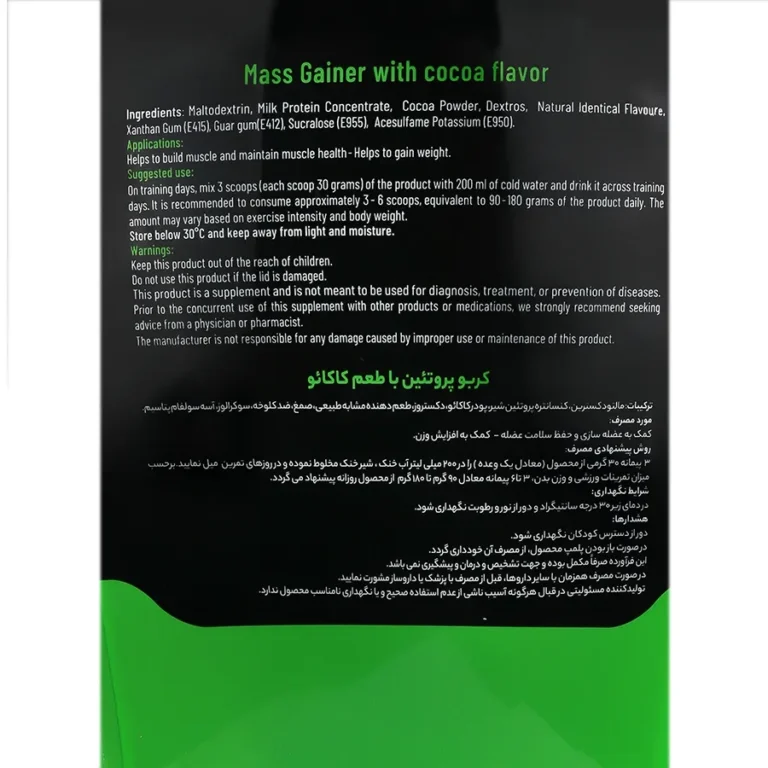 مس گینر آرمسترانگ Armstrong Mass Gainer یک مکمل کربوپروتئینی قدرتمند برای افرادی است که بهدنبال افزایش وزن و حجم عضلانی هستند. این محصول با نسبت علمی ۳ به ۱ کربوهیدرات به پروتئین طراحی شده تا کالری کافی و مواد مغذی لازم را برای بدنهایی با متابولیسم بالا یا تمرینات سنگین تأمین کند. طعم کاکائویی دلپذیر آن، مصرف روزانه را آسان و خوشایند میسازد.
