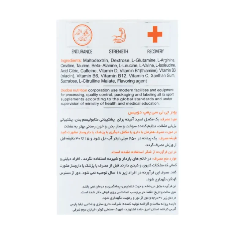 پودر پمپ جیتیسی دوبیس یک مکمل پیشتمرینی قدرتمند است که برای افزایش انرژی، قدرت و استقامت در طول تمرینات طراحی شده است. این محصول با ترکیبی کامل از آمینواسیدها، ویتامینها و ترکیبات اثرگذار به شما کمک میکند تا تمرینات خود را با شدت و تمرکز بیشتری دنبال کنید و از خستگی زودرس جلوگیری کنید.