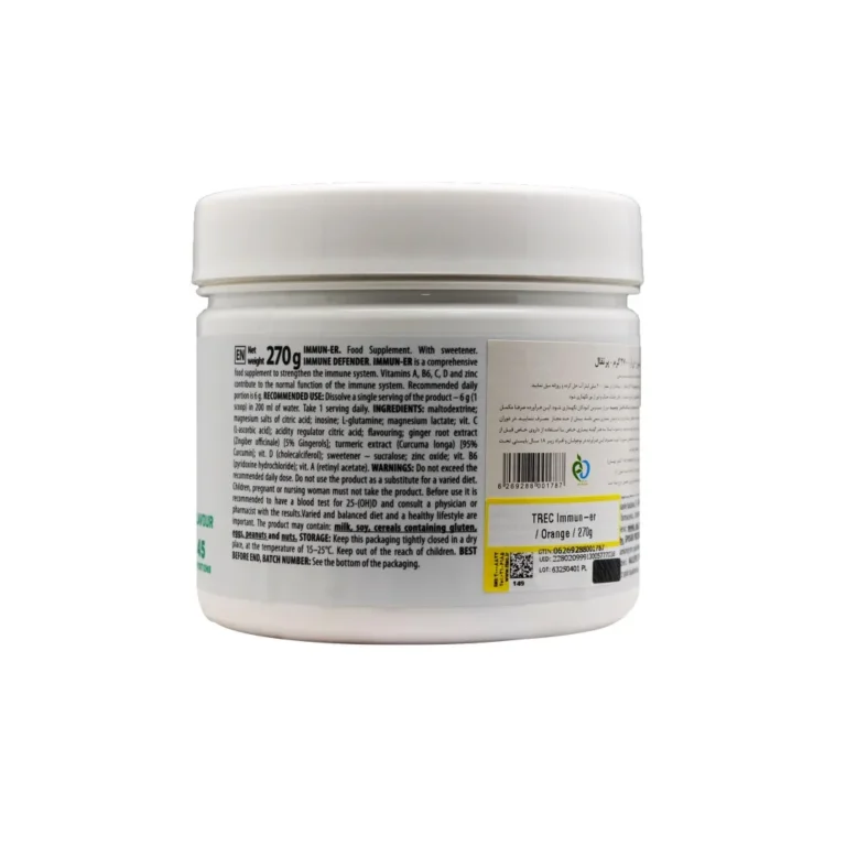 این محصول از برند معتبر Trec Nutrition و با مبدا کشور لهستان، تضمینکننده کیفیت و اثربخشی است. برای حفظ کیفیت و پایداری محصول، توصیه میشود آن را در محلی خشک، خنک و دور از نور خورشید و دسترس اطفال نگهداری کنید. پودر ایمون ای آر ترک نوتریشن گزینهای عالی برای کسانی است که به دنبال تقویت سیستم دفاعی بدن خود در برابر عوامل بیماریزا هستند.